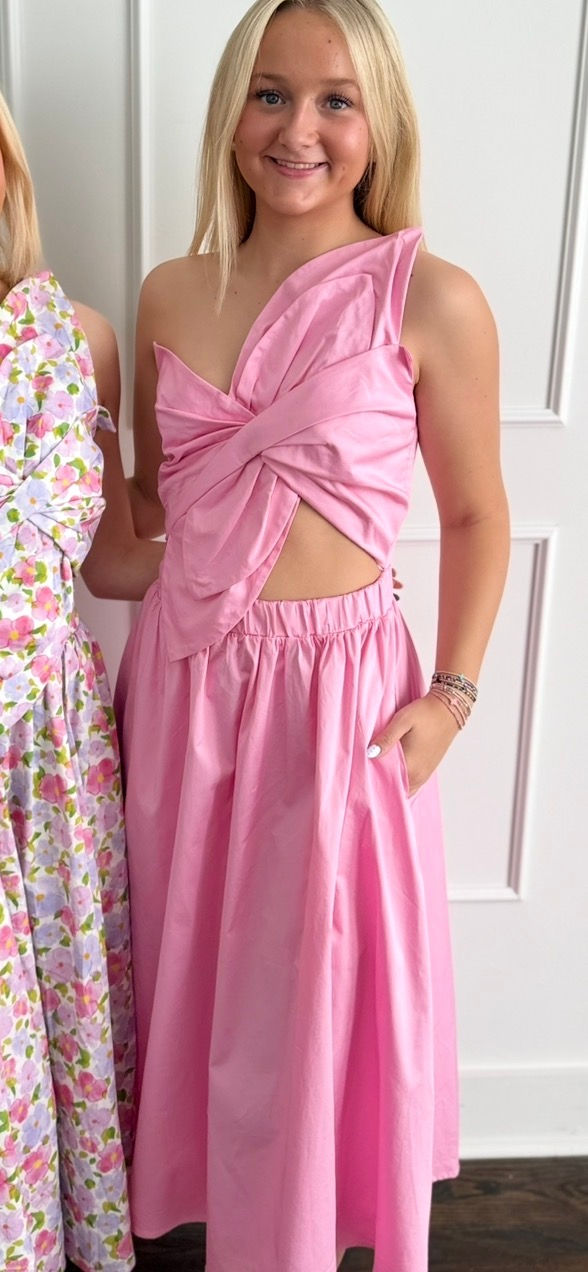 Pink Knotted Bow Midi Dress